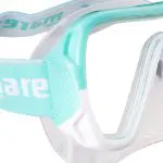 The Keewee snorkel mask is a single lens mask. The mask has a silicone face piece, making it perfect for long adventures in the water. The Keewee model from Mares is robust and durable. The headpiece, consisting of an elastic headstrap, makes it comfortable to wear, even with long hair. It is also extremely easy to adjust with the a sliding buckle. The field of vision is very wide thanks to the low-profile frame and the shape of the tempered glass lens.