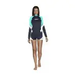 She Dives women’s long-sleeved rash guard with UPF 30+ protection and comfortable fit. It can be used for water sports and is made of a lightweight material that is quick-drying and comfortable.